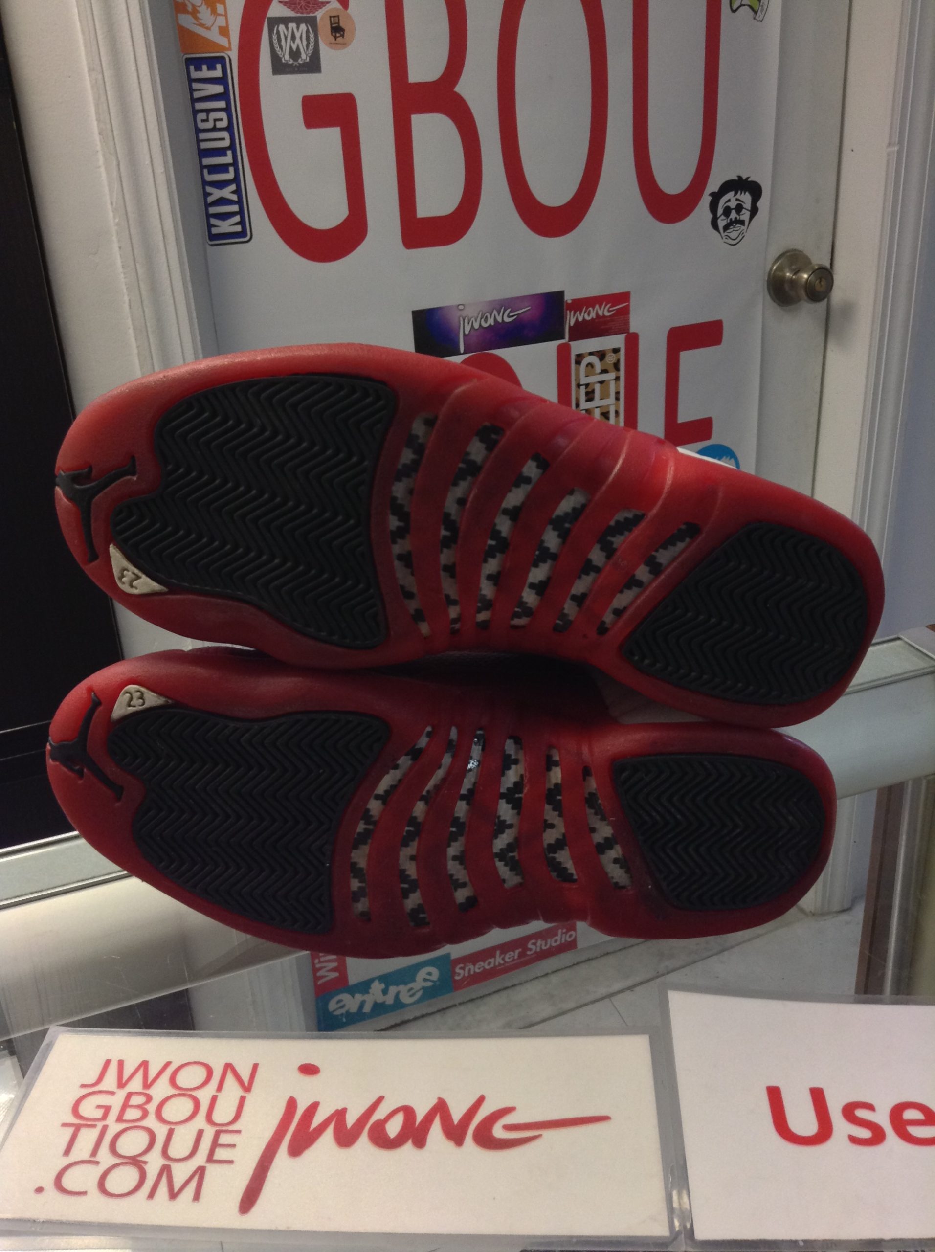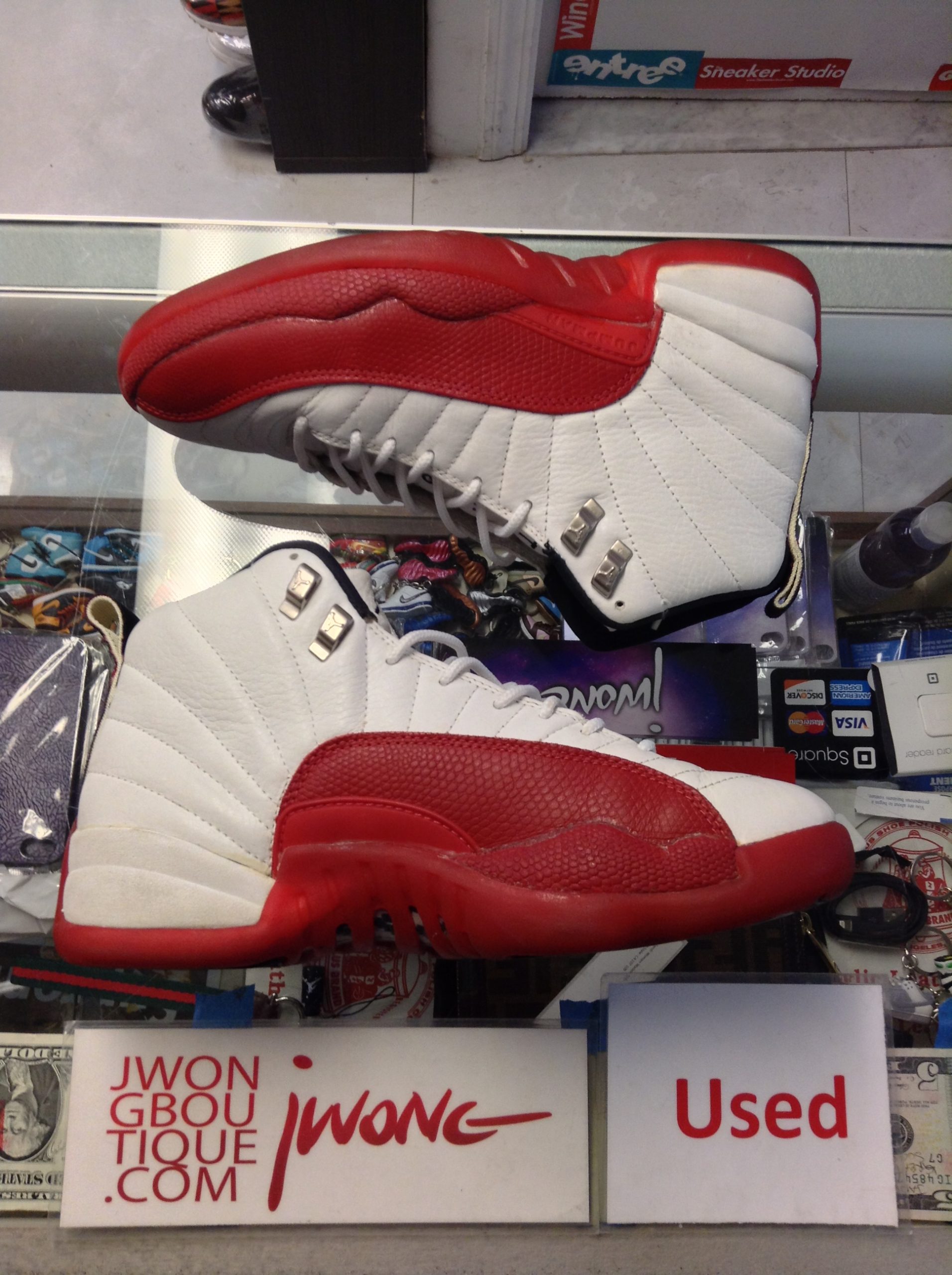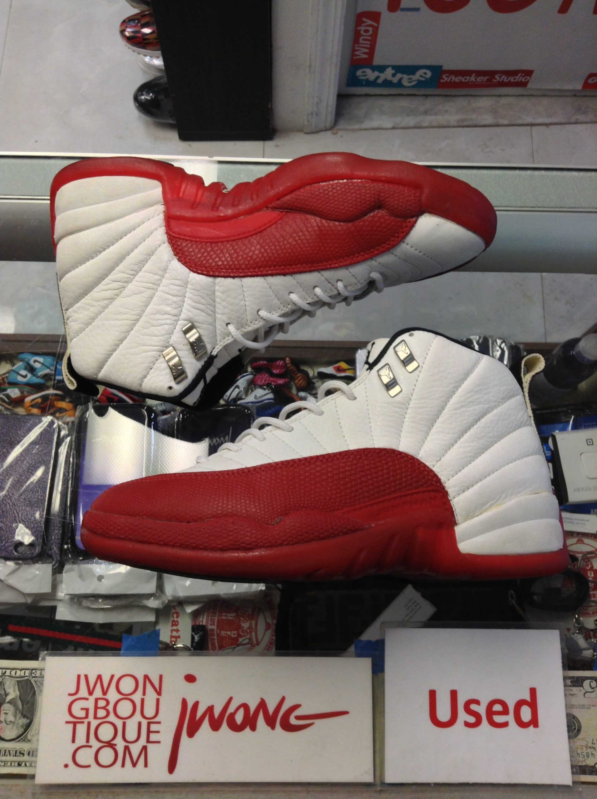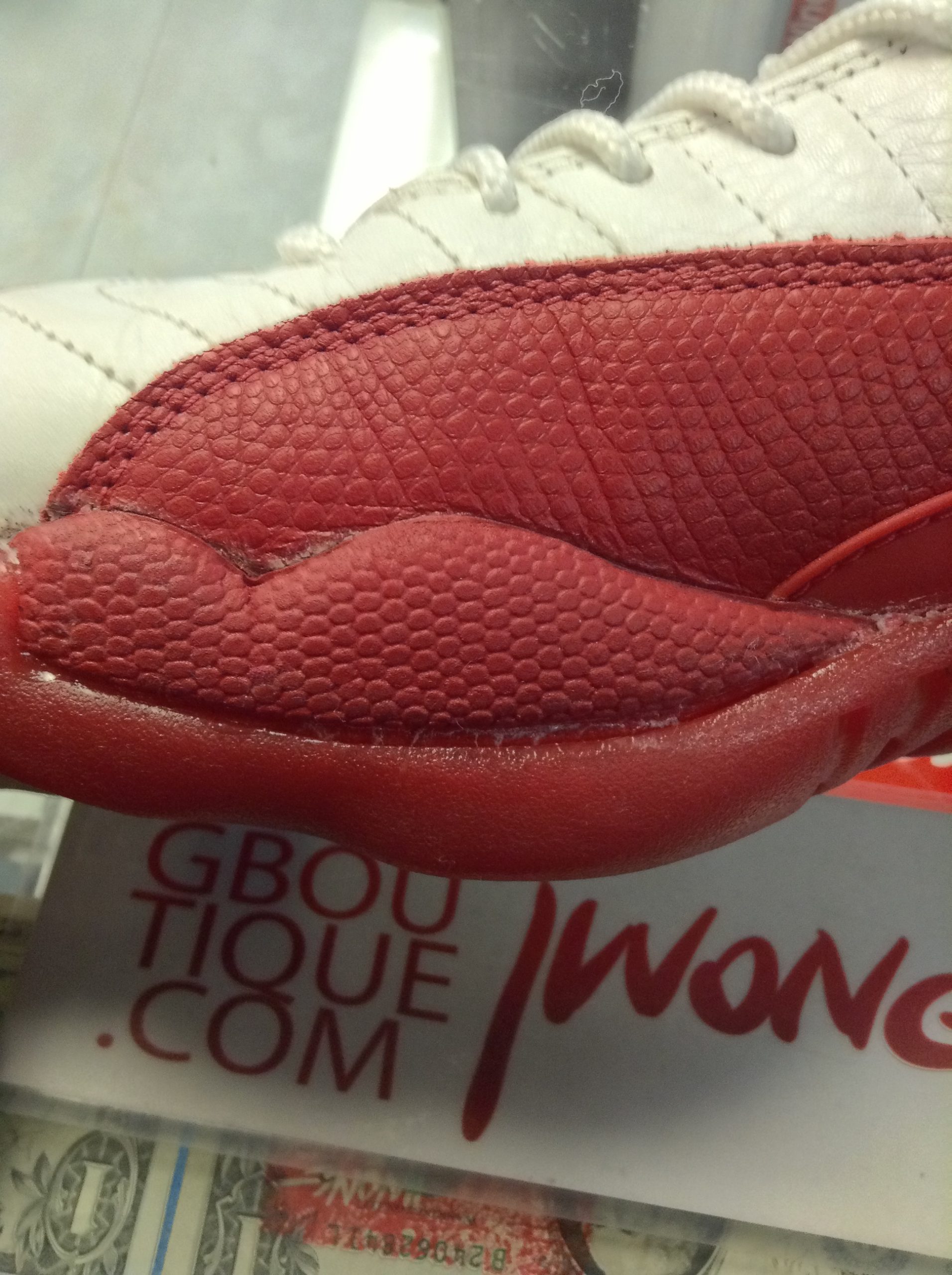 info: “Jordan Cherry XII,” Reglued, Plastic Crack On Right Shoe, Midsole Separation On Left Shoe