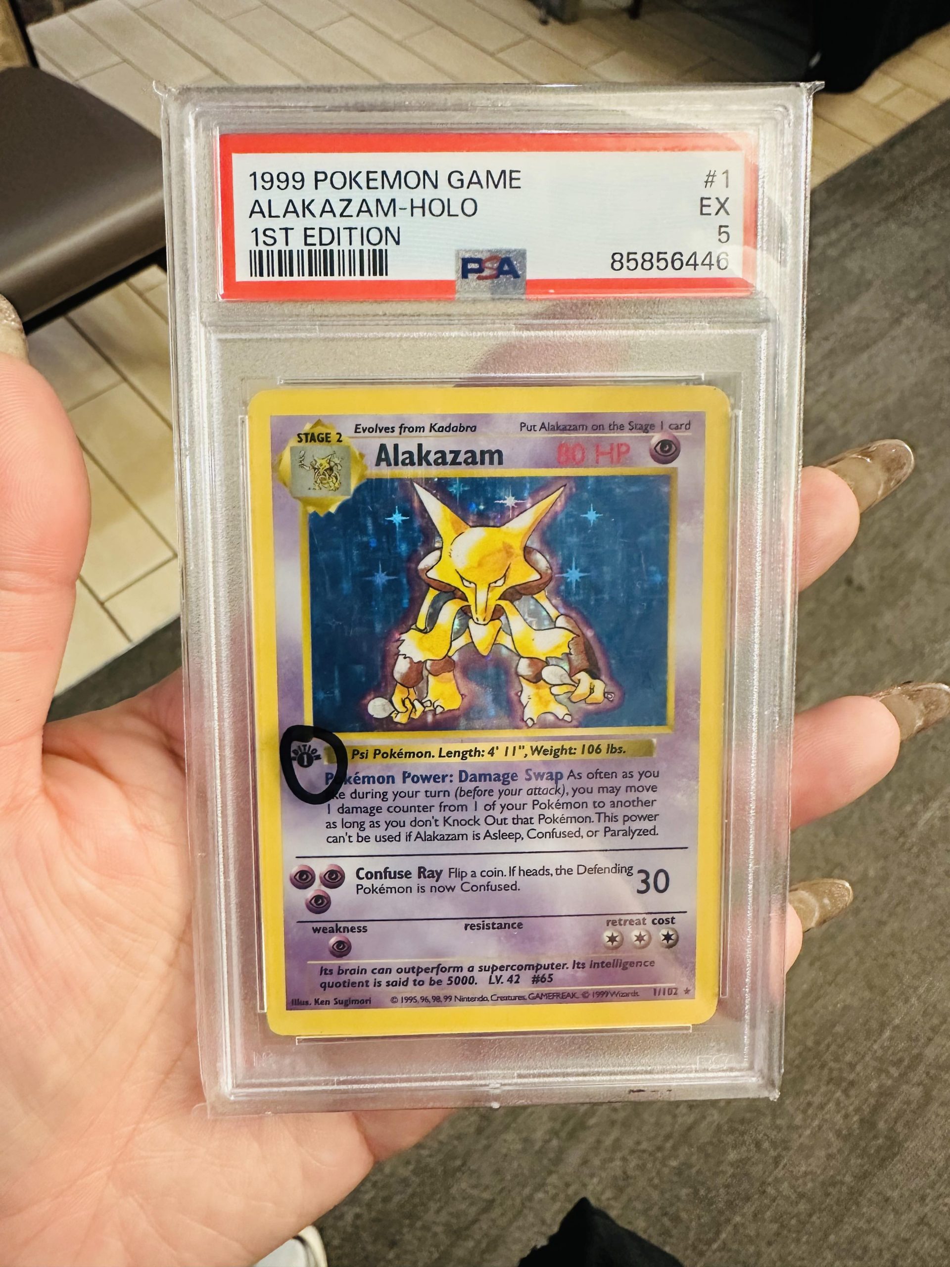 info: “1999 Pokemon Game Alakazam Holo 1st Edition #1”