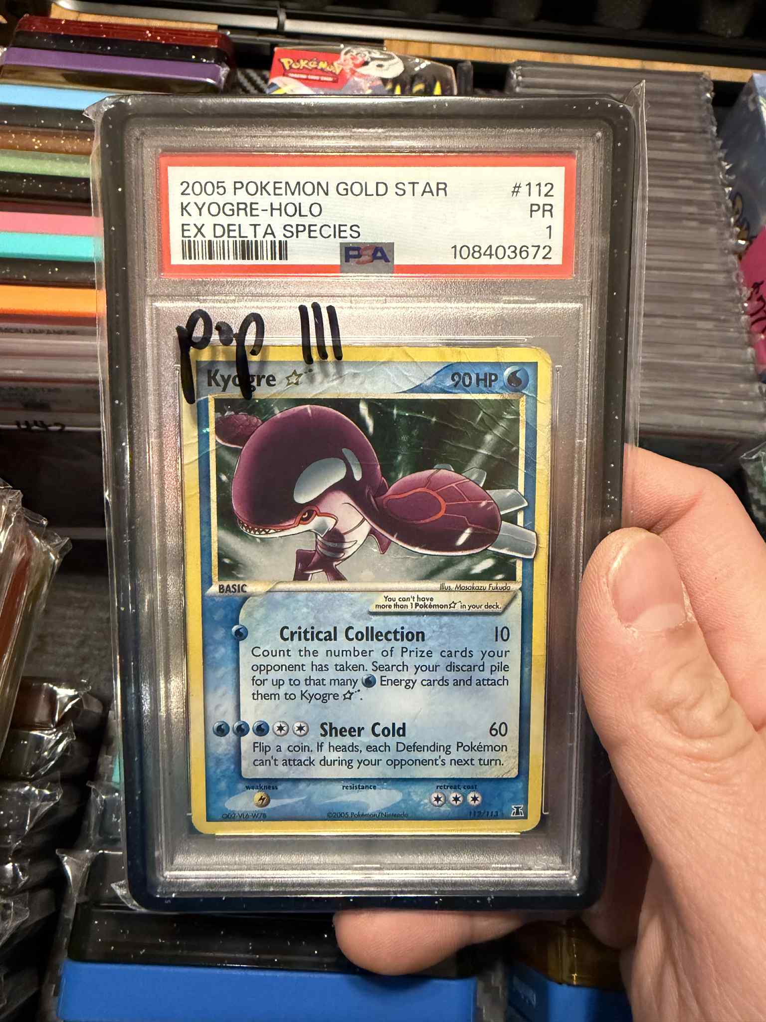 info: “2005 Pokemon Gold Star Kyogre EX Delta Species 112 PSA 1”