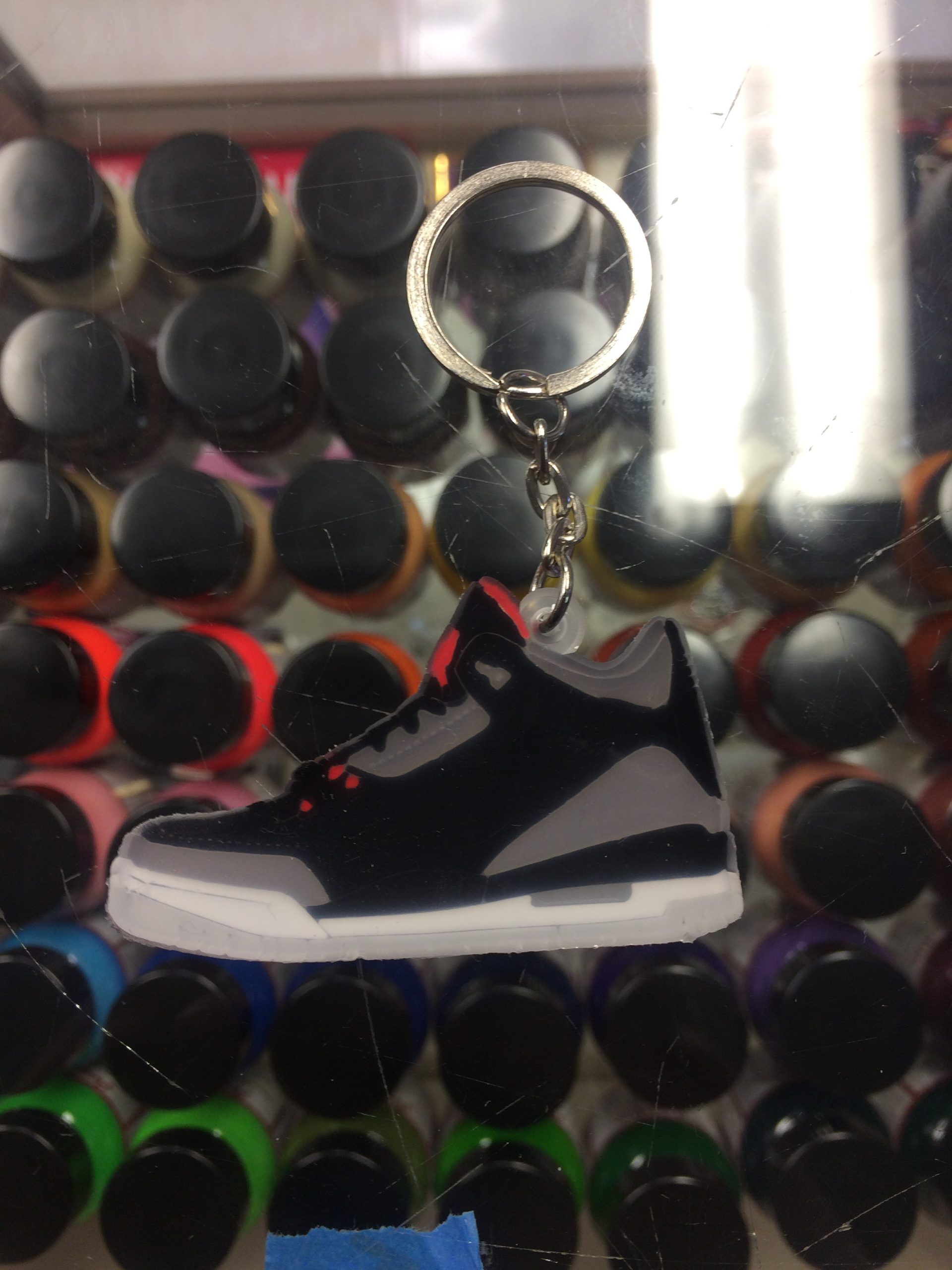 info: “2011 Nike Air Jordan III Black Cement 2D Keychain,” Sold Separately, One Side Per Order