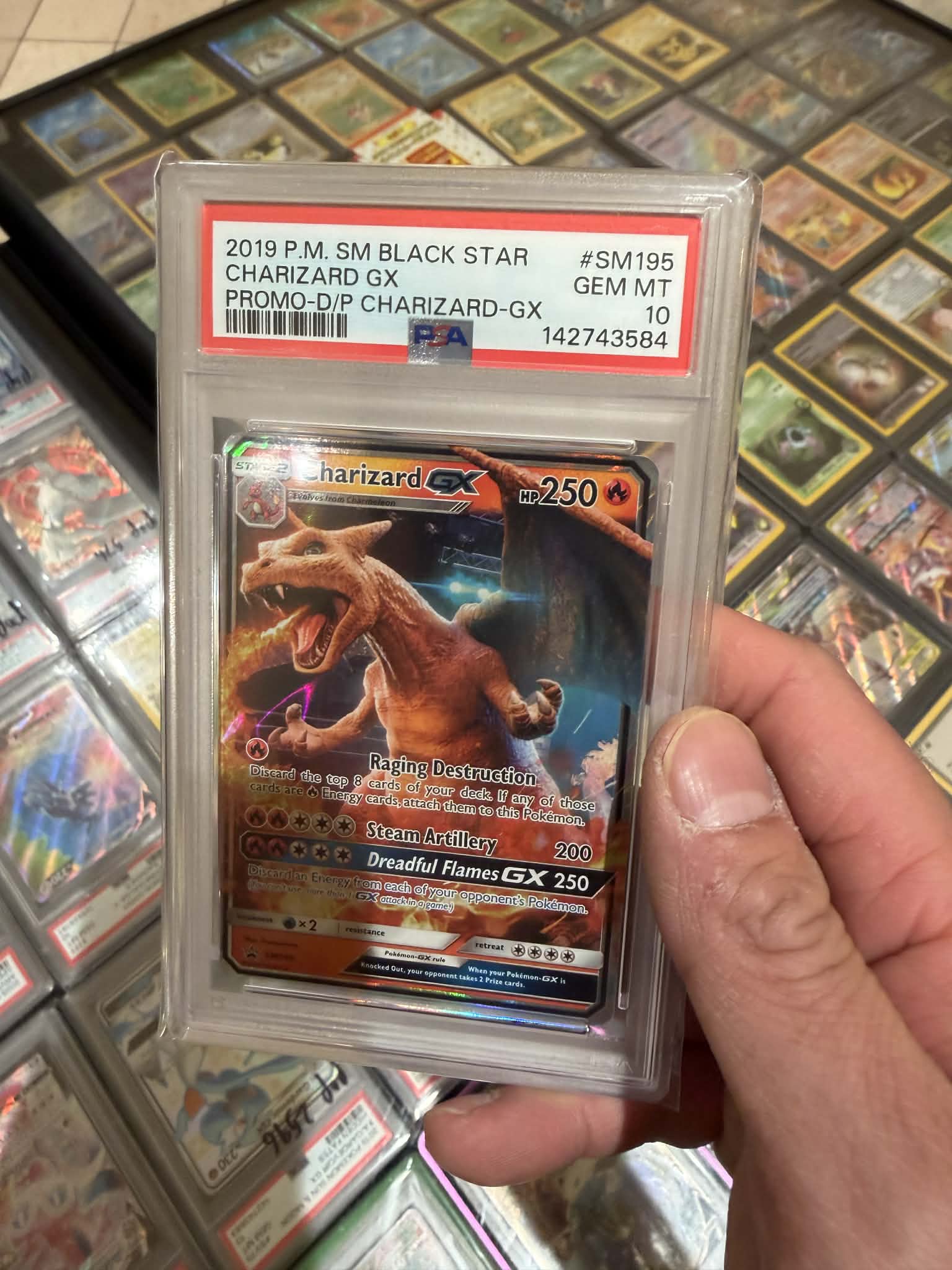 info: “2019 Pokémon Sun & Moon Black Star Charizard GX Promo #SM195 PSA 10 Gem Mint”