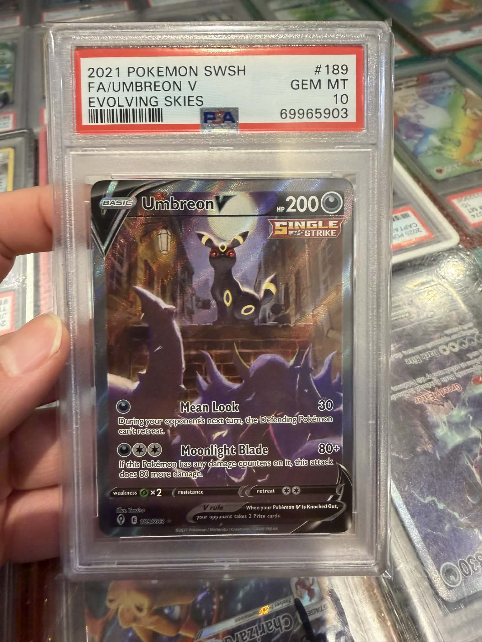 info: “2021 Pokemon SWSH Evolving Skies #189 FA Umbreon V PSA 10 Gem Mintt”