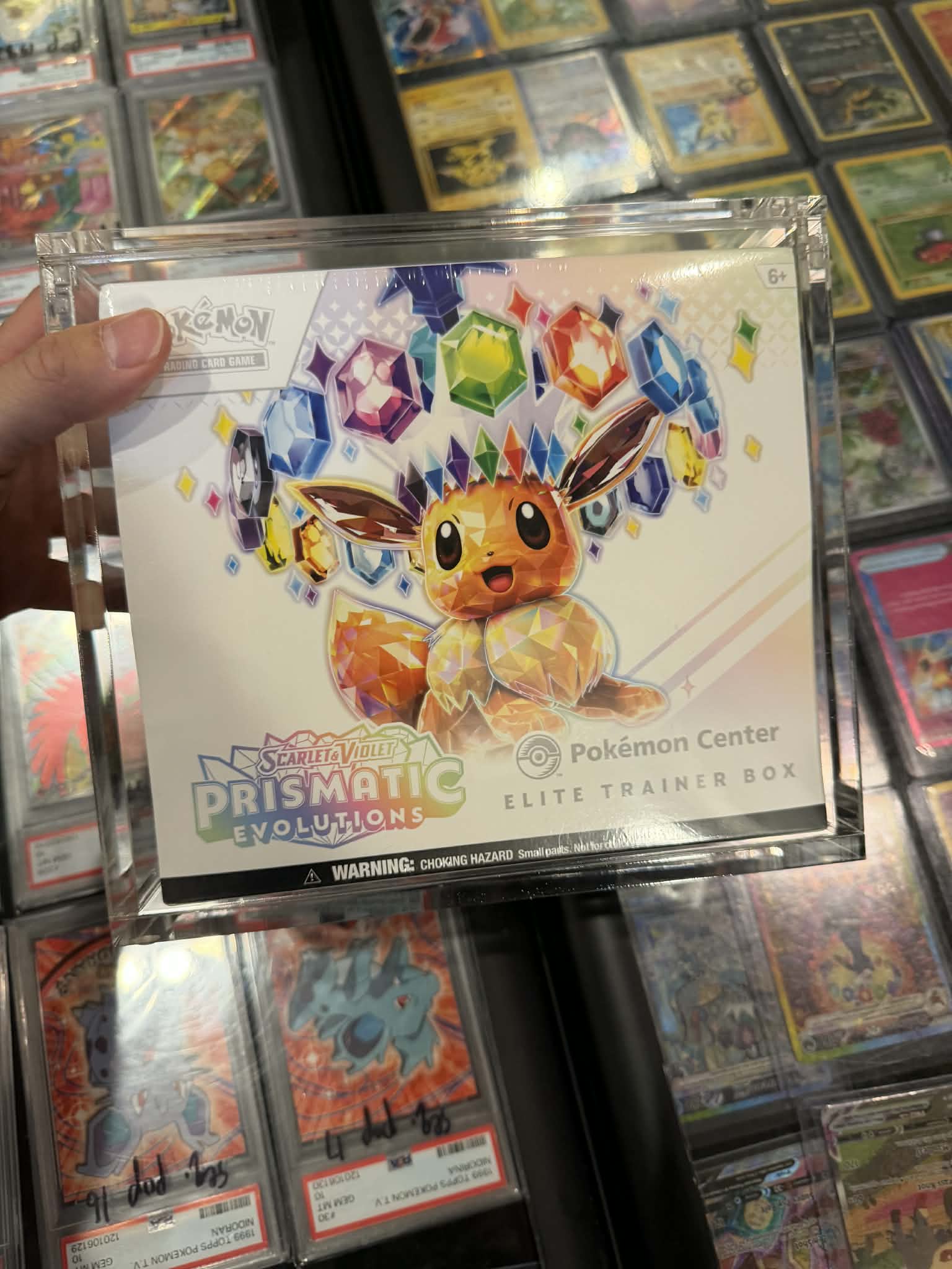 info: “2025 Pokémon Center Scarlet & Violet Prismatic Evolutions Elite Trainer Box”