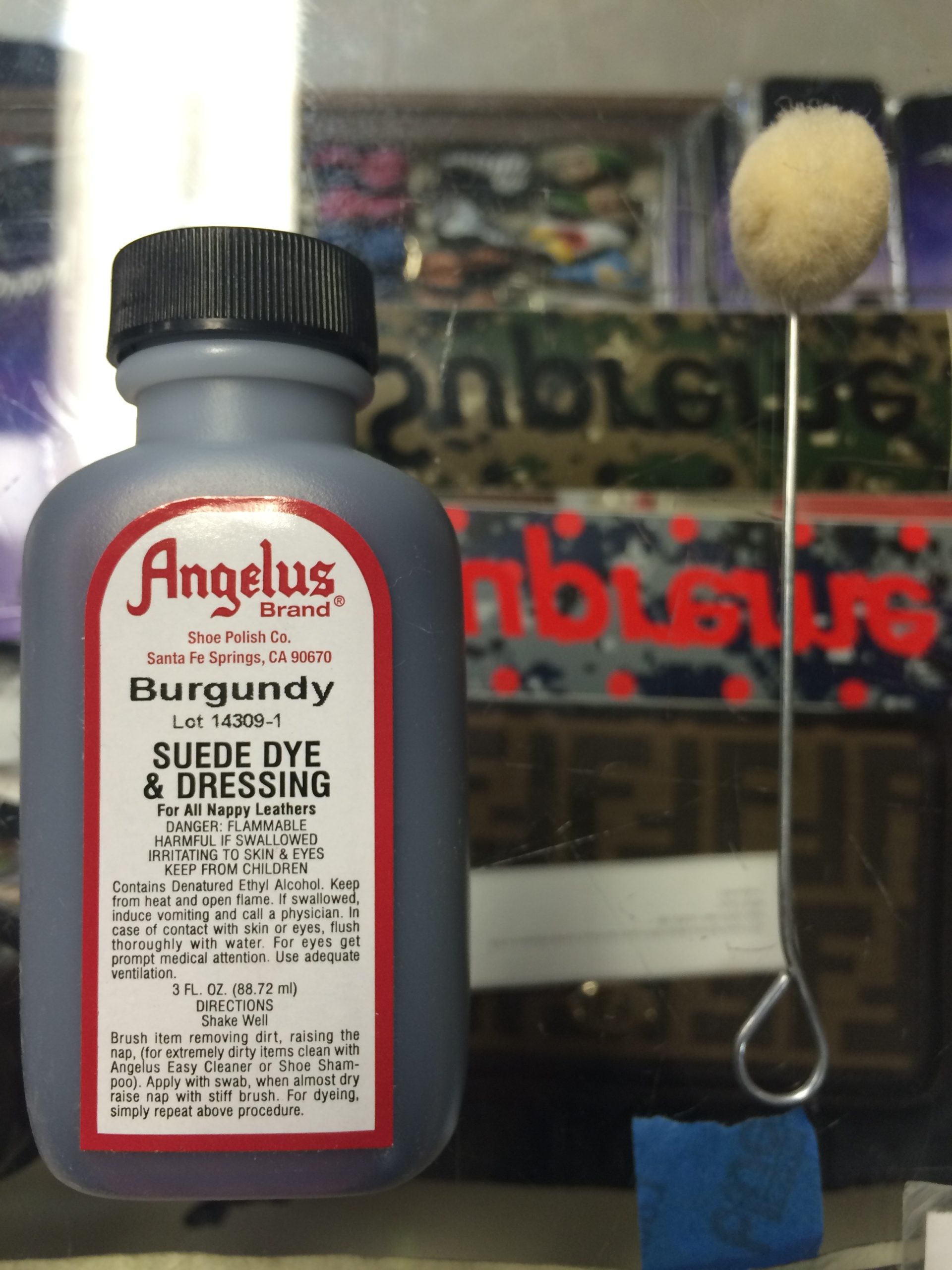 info: “Angelus Suede Dye And Dressing Burgundy 3 FL OZ”