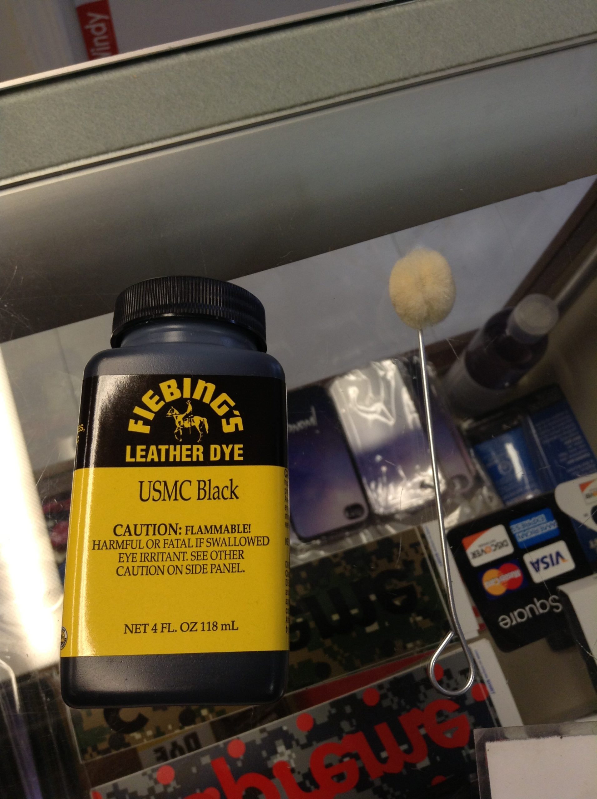 info: “Fiebing’s Leather Dye USMC Black 4 FL OZ”