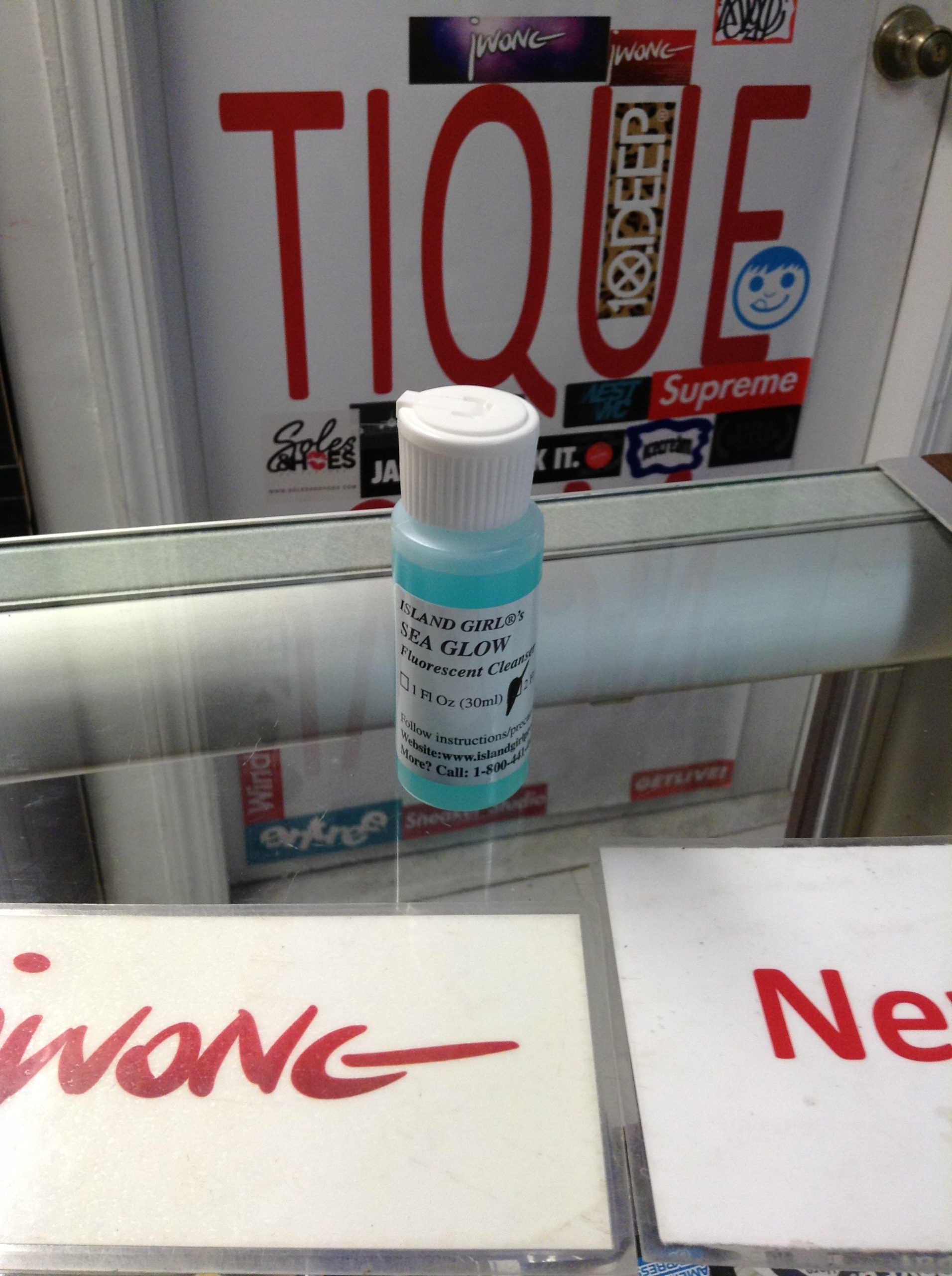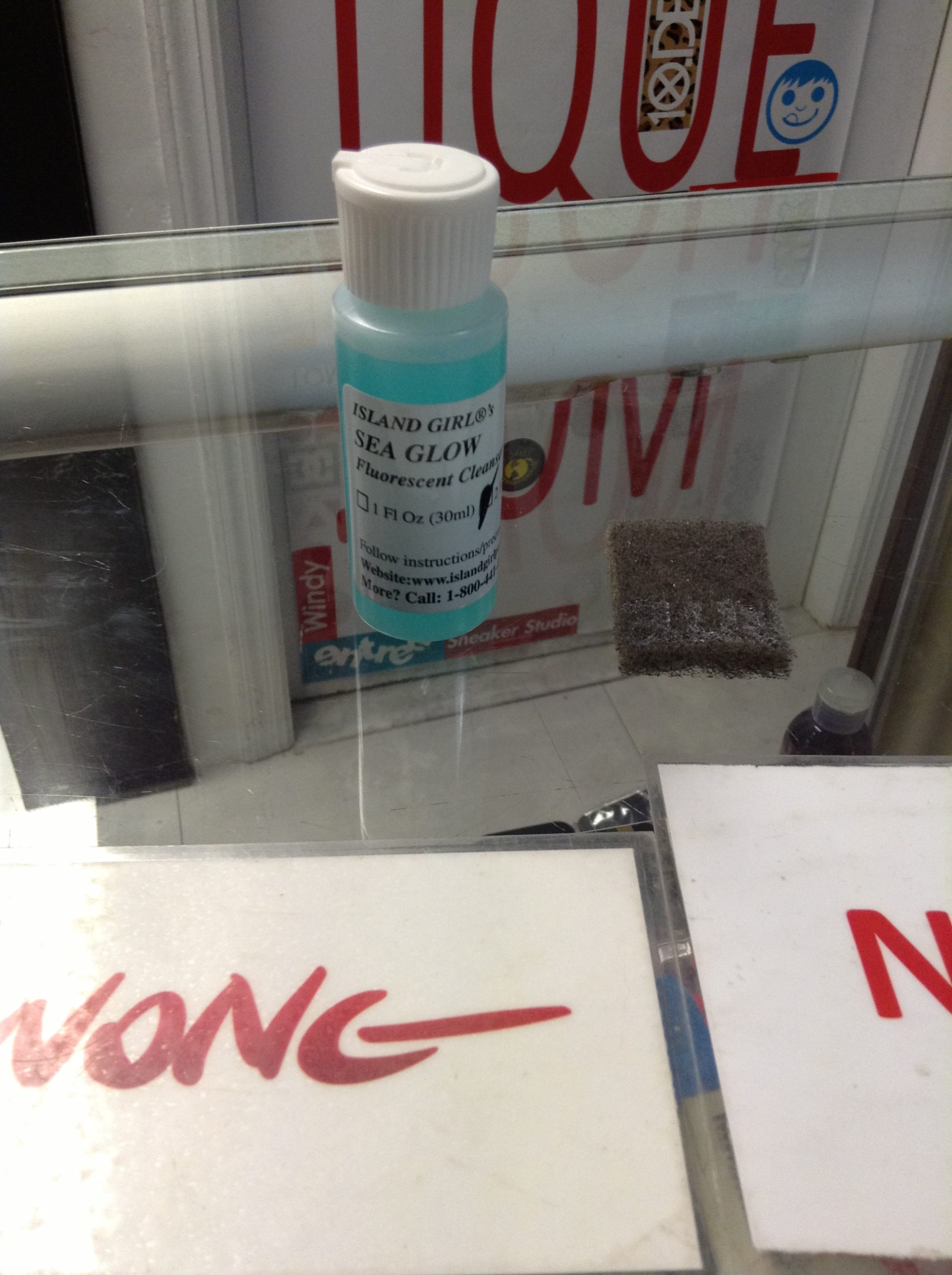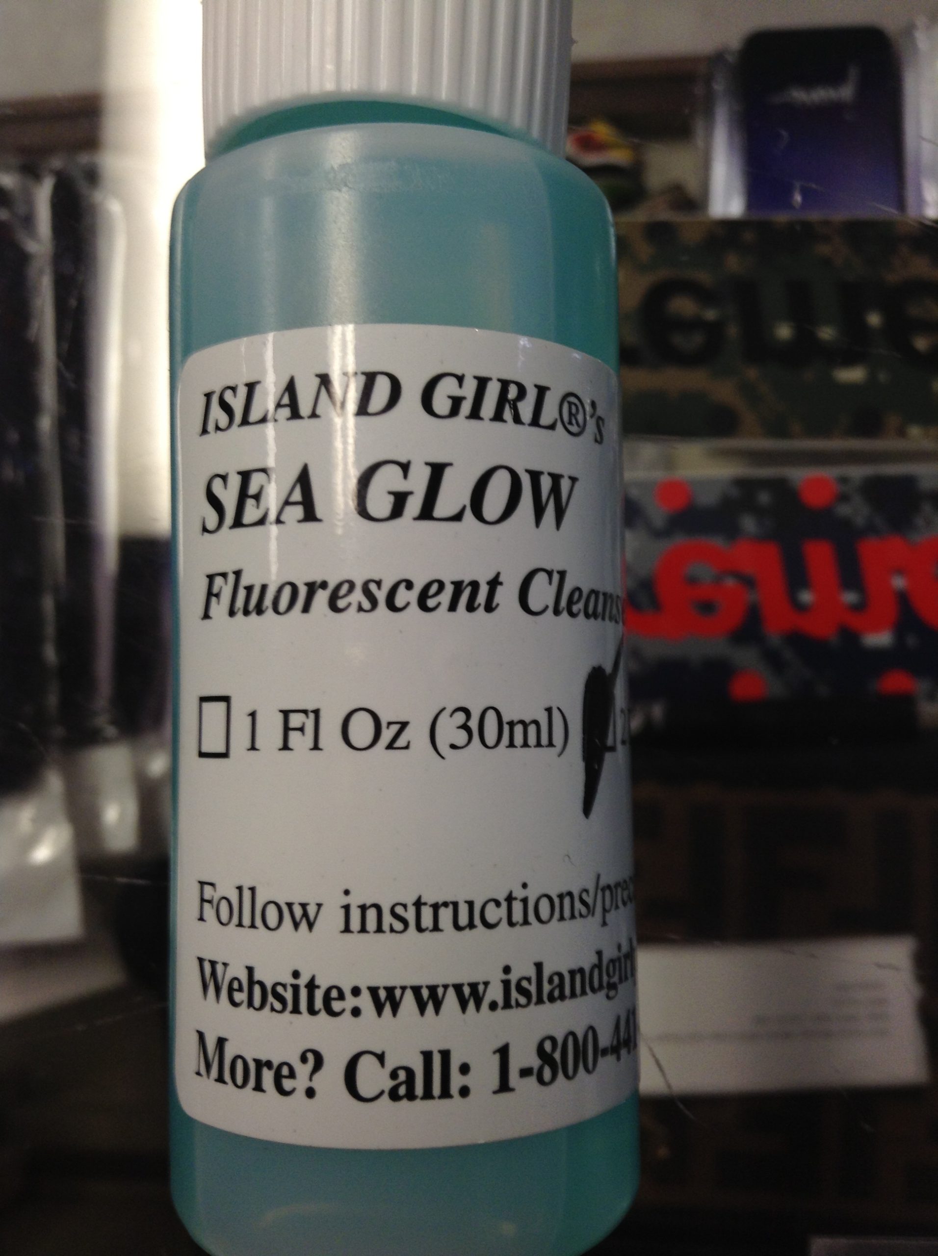 info: “Island Girl Sea Glow 2 FL OZ,” Comes with Brillo Pad While Supplies Last And Instructions on How to Use.