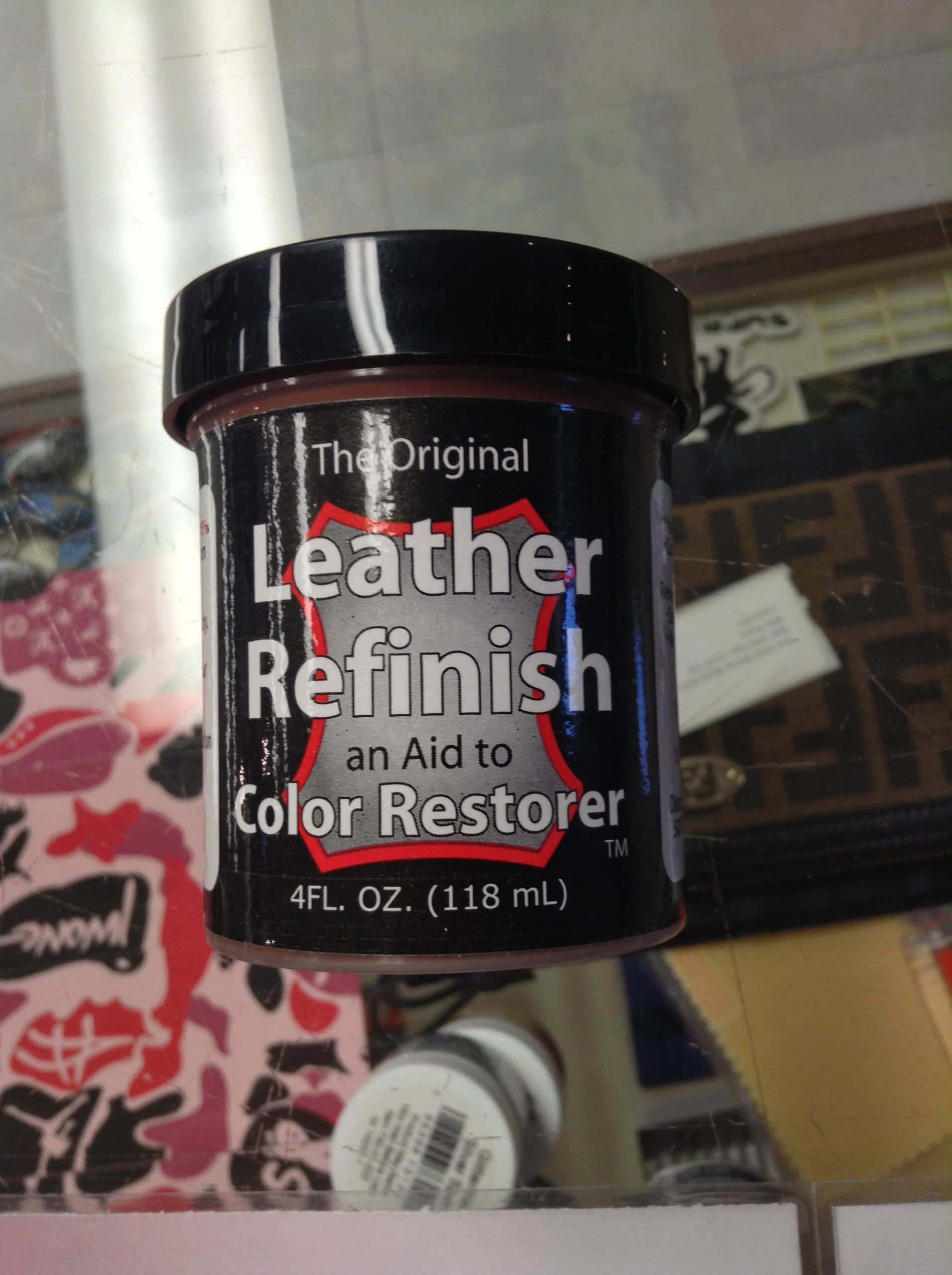 info: “Leather Refinish An Aid to Color Restorer #116 Dark Brown”