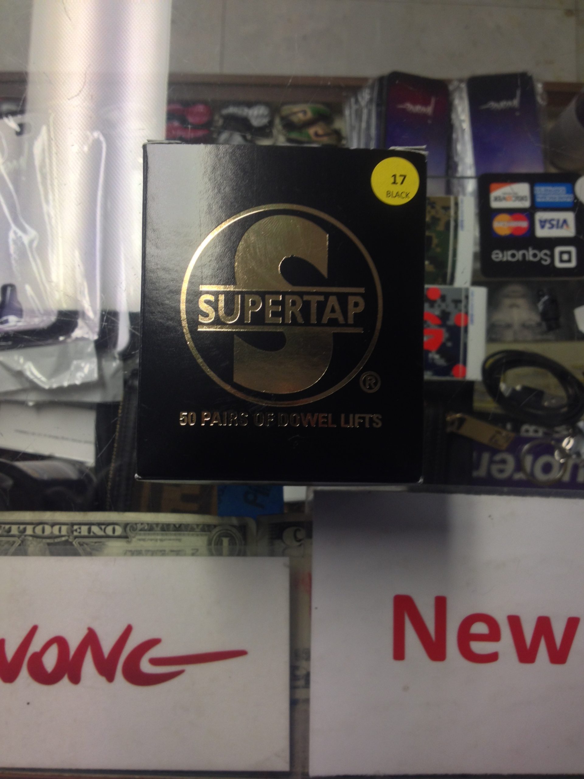 info: “Super Tap Dowel Lift Heel Tips #17 Black,” 50 pairs Per Box